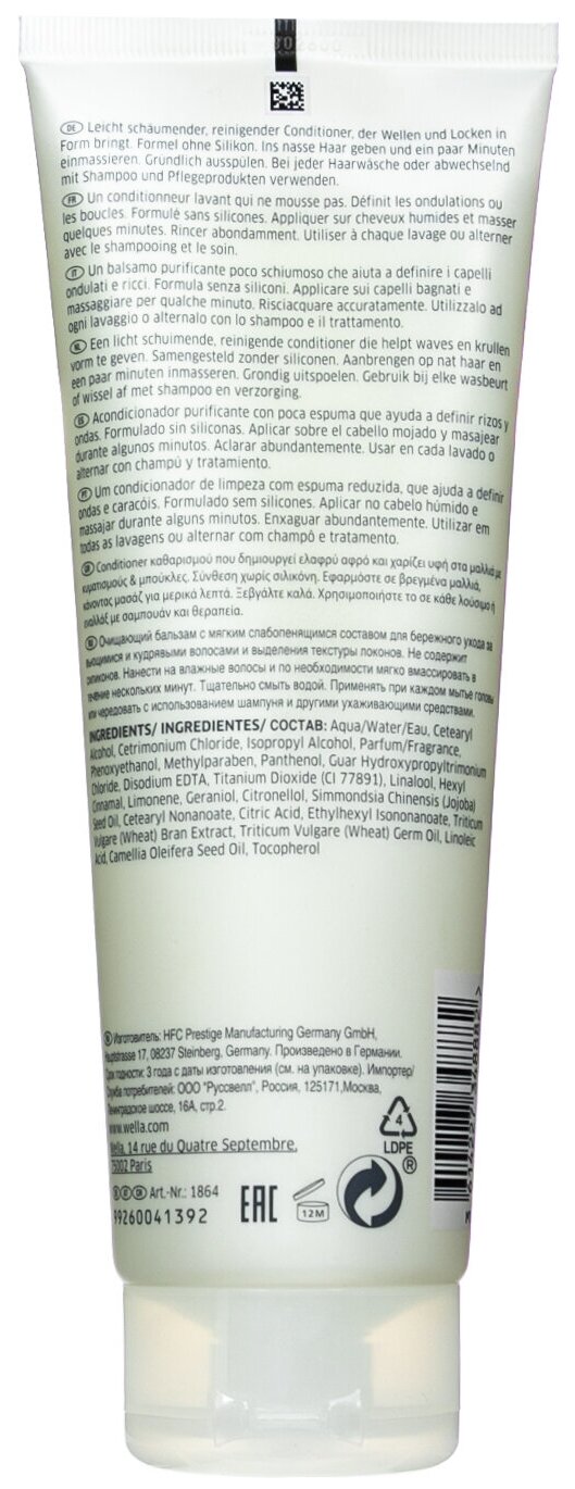 На сегодняшний день товар «Wella Professionals Очищающий бальзам для вьющихся и кудрявых волос 1000 мл (Wella Professionals ) (99240060995)» можно купить с кешбеком в 1 магазине: Cdek.shopping