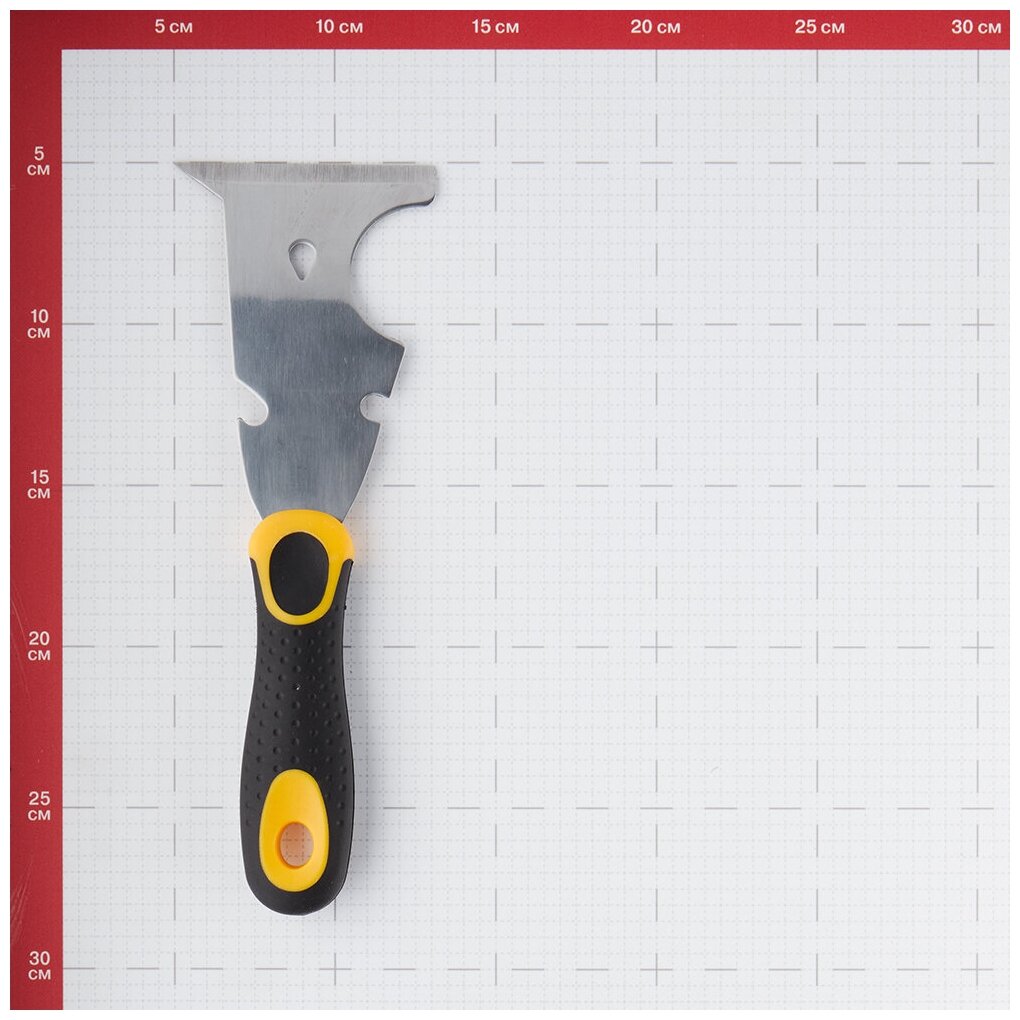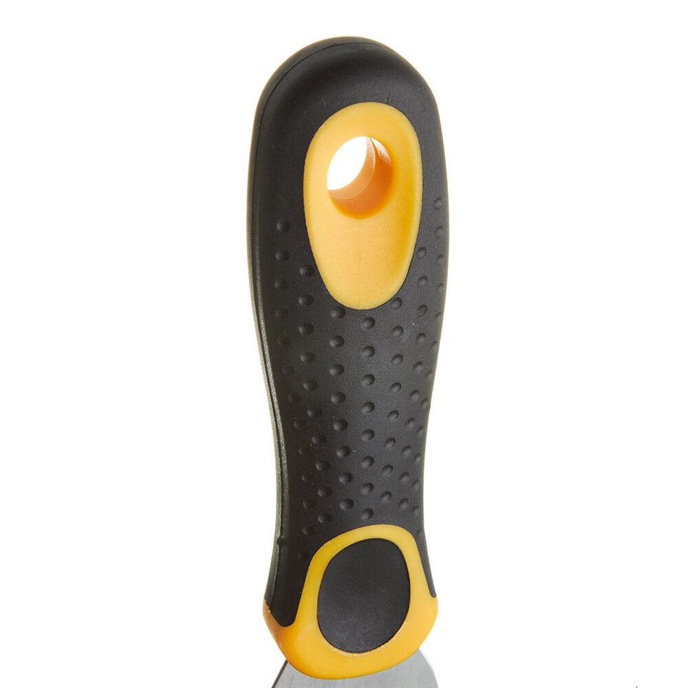 Мультишпатель HARDY , серия 82 - многофункциональный инструмент, позволяющий выполнить широкий спектр работ в ремонте и строительстве. Жесткий шпатель с гладким лезвием отлично подойдет для нанесения, сглаживания и выравнивания строительно-штукатурных смесей, гипсовых масс, шпатлевки, шпатлевания неровностей и трещин. Легко заполняет зазоры и сглаживает небольшие участки при работе со шпаклевкой. Шпателем удобно вскрывать емкости, очищать кисти и другой рабочий инструмент. Полукруглая впадина используется для очистки труб и подобных поверхностей. Успешно используется при монтаже, демонтаже натяжных потолков. Лезвие выполнено из прочной нержавеющей стали, отшлифовано, отполировано и надежно закреплено в рукояти.