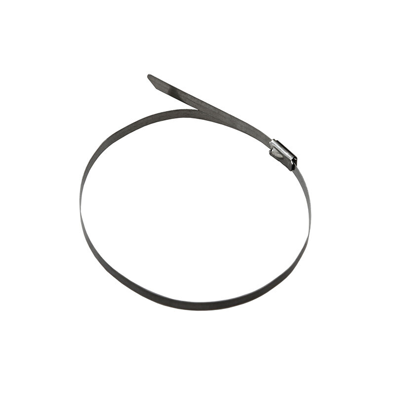 Хомут изготовлен из нержавеющей стали AISI 304: обладает высокой прочностью, долговечностью, не подвержен коррозии, а также отличается огнестойкостью, благодаря чему подходит для монтажа ОКЛ (огнестойких кабельных линий).