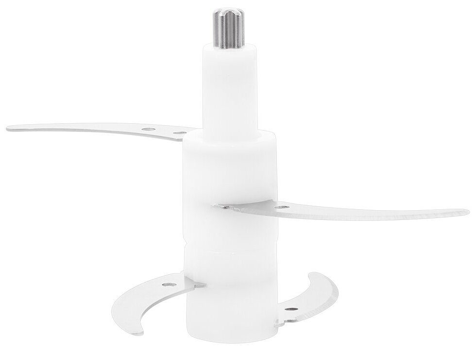 Специальная конструкция ножа позволяет измельчать продукты практически по всей высоте чаши. Для обеспечения безопасности в наборе к измельчителю идут защитные кожухи для ножей.2 скорости работы