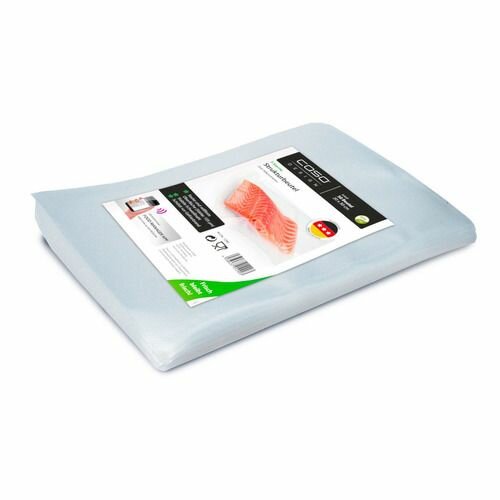 Вакуумные пакеты Caso подходят для бескамерных упаковщиков, производятся из качественных пищевых полимеров, в составе которых не содержатся вредные элементы. Пленка отличается высокой прочностью и стойкостью к разрыву (толщина 160 мкм). Пленка является термостойкой, подходит для заморозки, СВЧ печей, а также приготовления продуктов в су виде. Возможно многоразовое использование и мойка в посудомоечной машине. Благодаря армированному слою пакета обеспечивается максимальная откачка воздуха, что позволяет создать необходимый уровень вакуума.В комплекте 50 пакетов размером 23х30 см, а также стикеры с QR-кодом. При помощи приложения «Caso Food Manager» Вы всегда сможете контролировать количество продуктов в холодильнике, а также сроки их хранения.
