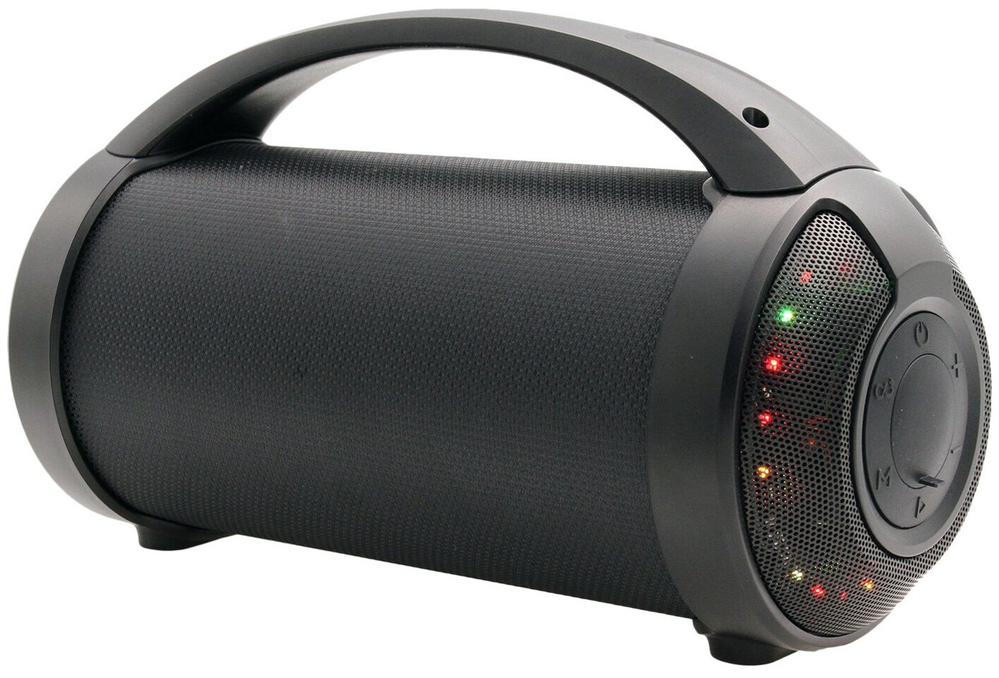 1) Хороший громкий звук2) Красиво светится 3) Есть aux и usb вход