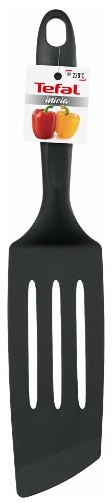 | Прочие особенности и свойства | Длинная лопатка Tefal Inicia черного цвета, подходит для ежедневного использования. Эргономичная конструкция модели с отверстием для хранения на крючке. Максимальная температура нагрева |