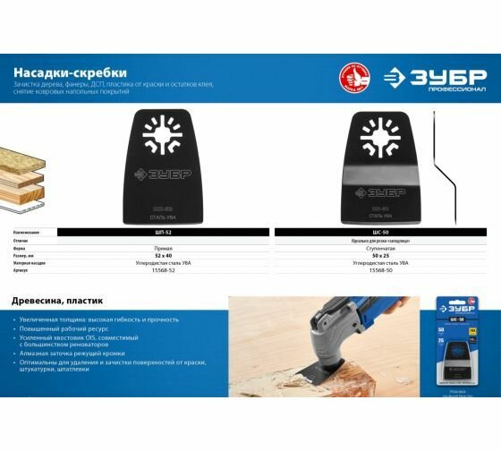 Насадка шабер Зубр 15568-50 ступенчатая из cтали У8А, 50 x 25 мм ШС-50