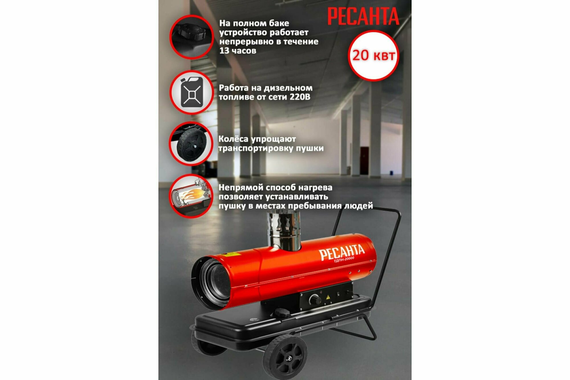 Тепловая пушка дизельная РЕСАНТА ТДПН-20000 20кВт красный [67/1/30]