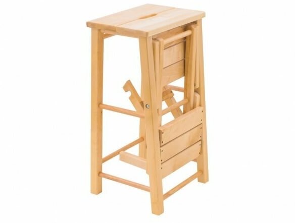 Табурет стремянка имеет удобное отверстие для хвата и быстрой легкой переноски, а закругленные и гладкие углы не оставят синяков самым нерасторопным пользователям. Устойчивые ножки и крепкая рама табурета гарантирует высокую надежность и безопасность. Оперативное складывание ступени и уникальный дизайн – это приятные бонусы новому хозяину.
