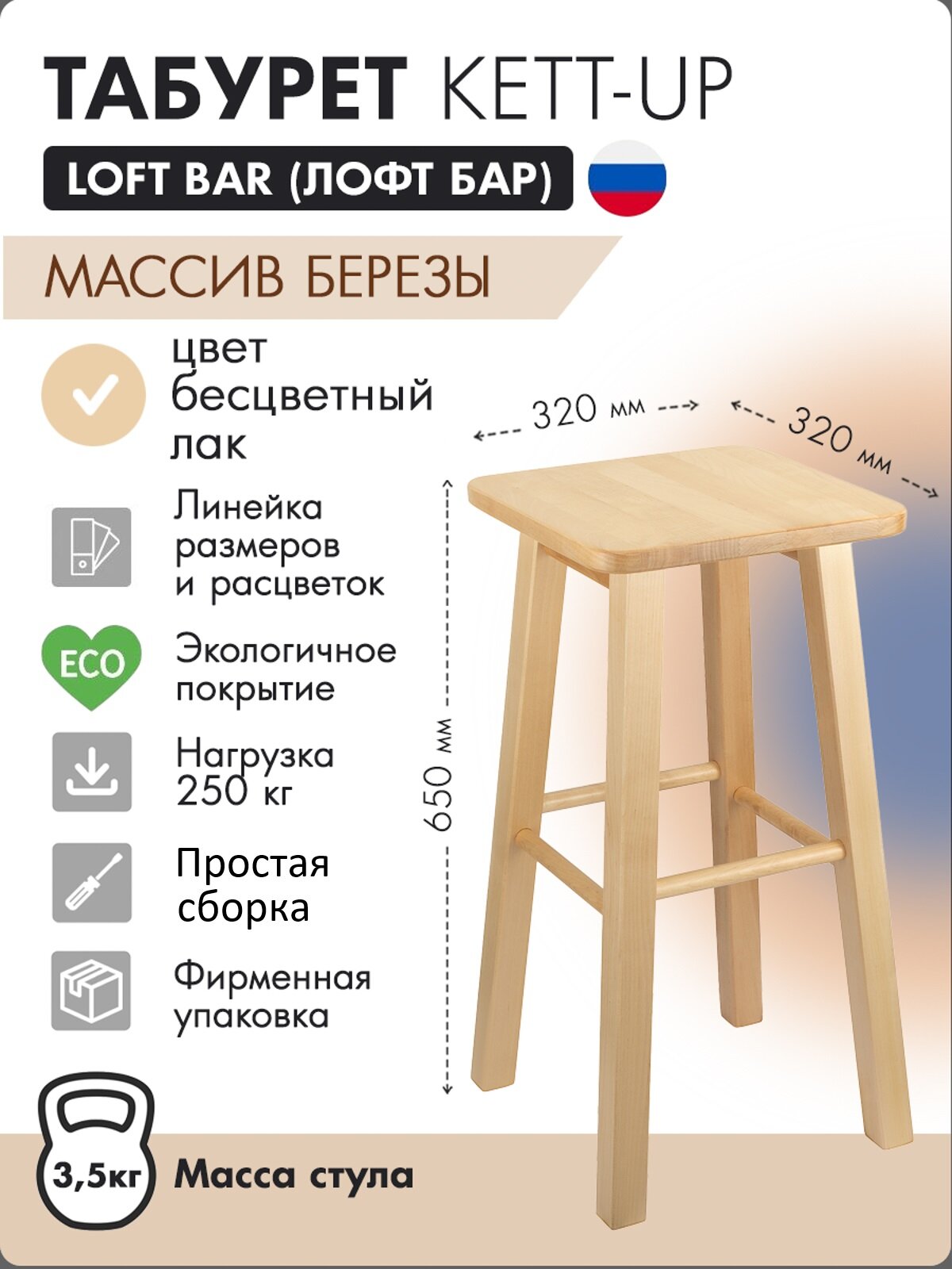 Крепкий, устойчивый и безопасный барный стул Kett-Up Loft Bar станет отличным дополнением вашего интерьера. Главная отличительная особенность – высокое качество древесины и ее обработка.