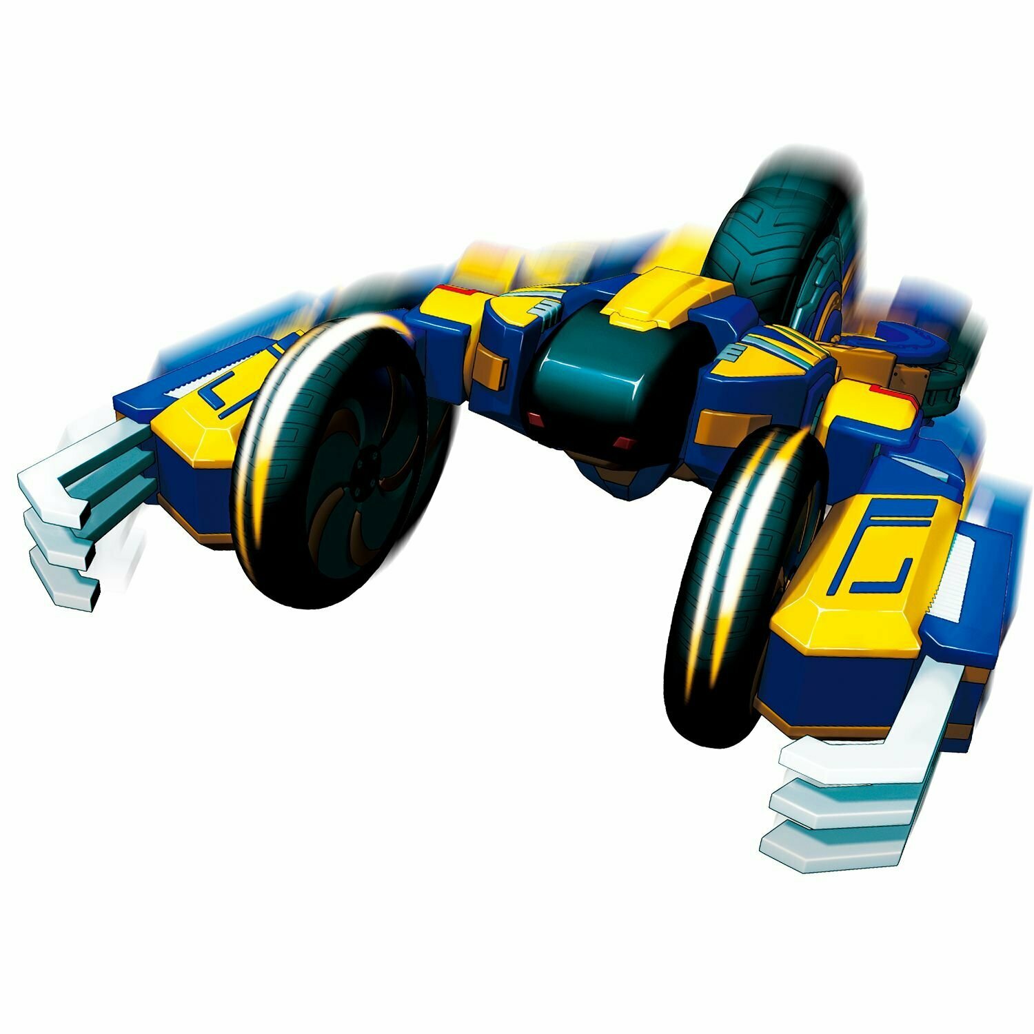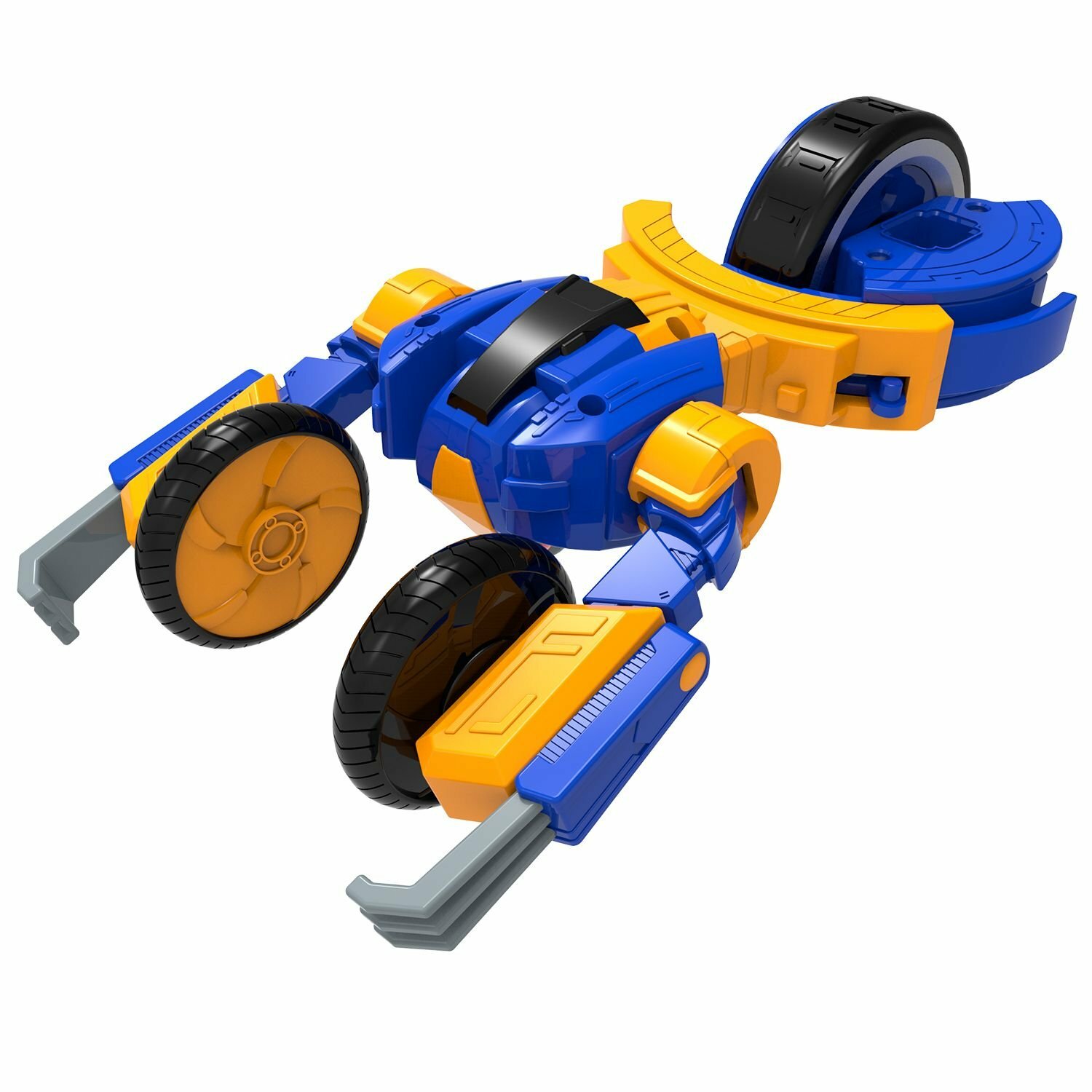 Волчок-трансформер 2 в 1 может функционировать в 2-х режимах: преодолевать расстояние до 15 метров в формате мотоцикла и крутиться вокруг своей оси более 90 секунд.