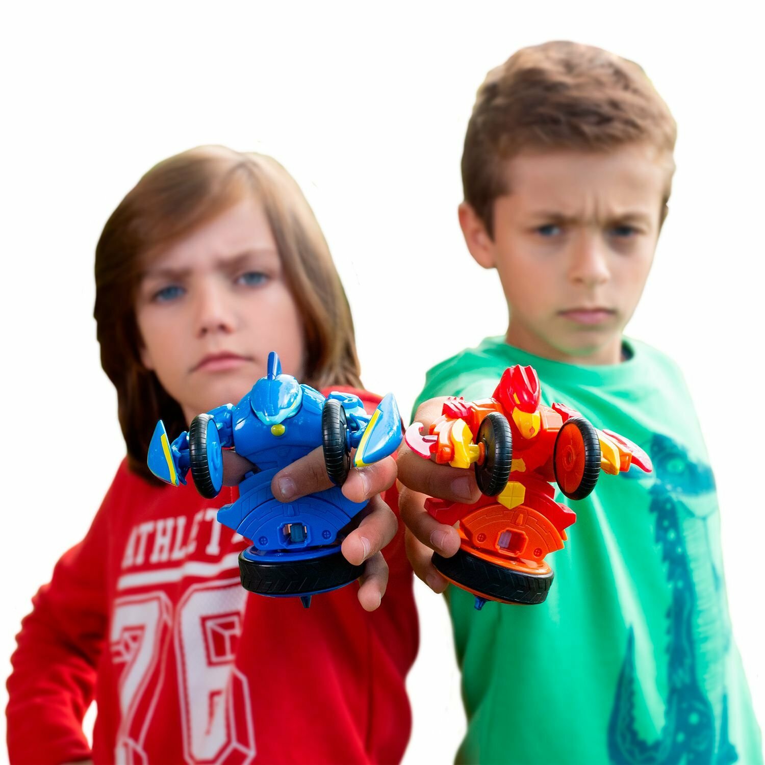 Устараивай битвы между трансформерами из набора: с помощью пускового устройства запусти одновременно волчков-трансформеров для баттла или трансформируй их в мотоциклы и устрой настоящие гонки!