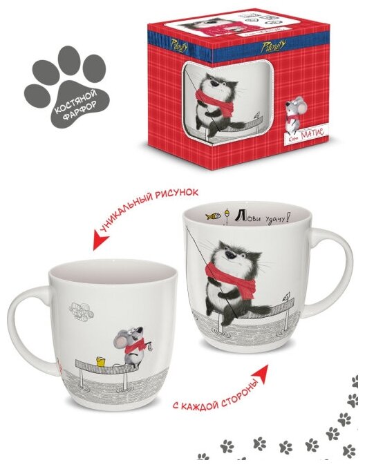 Модель: Кружка Кот Матис Лови удачу в подарочной коробке 380 мл