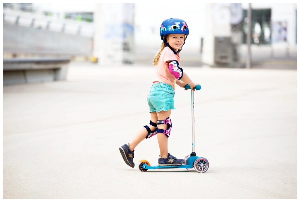 Комплект защиты обеспечивает дополнительную безопасность во время катания на самокате или беговеле.
