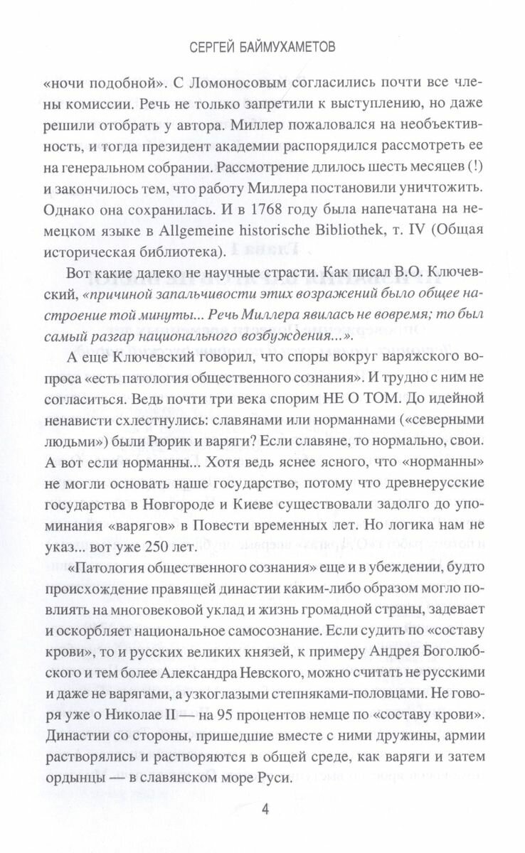 "Призвание варягов" & миф для утверждения власти Рюриковичей. Александр Невский & названый сын хана Батыя. Как "татаро-монголы" освобождали Гроб Господень. Петр I & основатель азиатчины в России. Потемкин & строитель империи.Осознанно или неосознанно многие из нас выбирают для себя только ту часть правды, которая им приятна. Полная правда раздражает. Исторические расследования Сергея Баймухаметова с конца 90? х годов печатаются в периодике, вызывают острые споры. Автор рассматривает ключевые моменты русской истории от Рюрика до Сталина. Точность фактов, логичность и оригинальность выводов сочетаются с увлекательностью повествования & книга читается как исторический детектив.