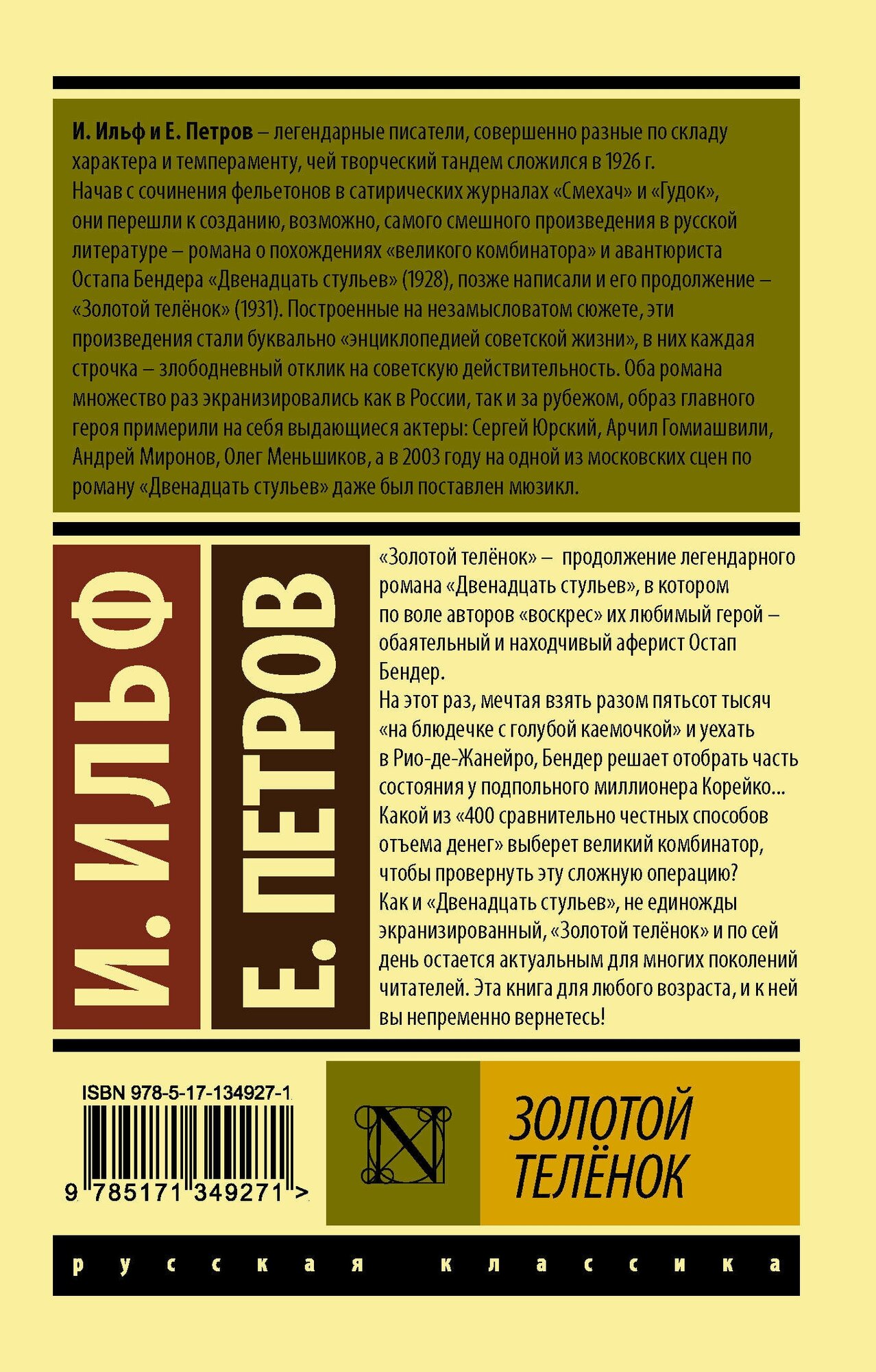 Как и "Двенадцать стульев", не единожды экранизированный, "Золотой телёнок" и по сей день остается актуальным для многих поколений читателей. Это книга для любого возраста, и к ней вы непременно вернетесь!