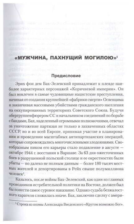 Самое интригующее - что именно Бах-Зелевскому удалось скрыть от правосудия - вы узнаете из предисловия ведущих отечественных военных историков. Их обстоятельное расследование проливает новый свет на чудовищные преступления нацистов в годы Второй мировой войны.