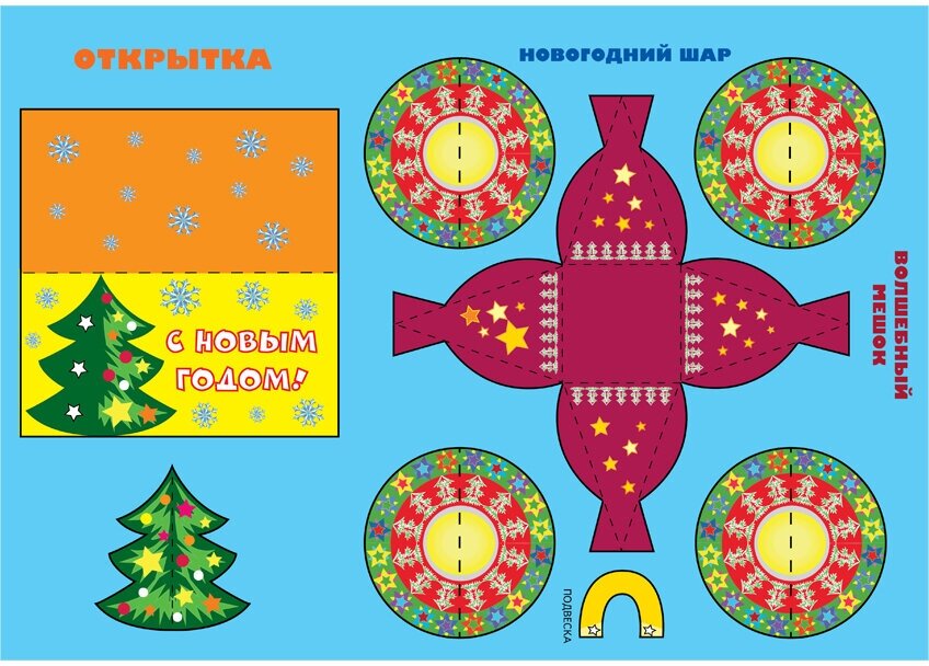 Встречаем Новый год и Рождество! С помощью нашей книжки-вырезалки сделайте объёмные новогодние фигурки и украшения, кокошник, маску щенка, рождественский вертеп. Так просто и интересно!