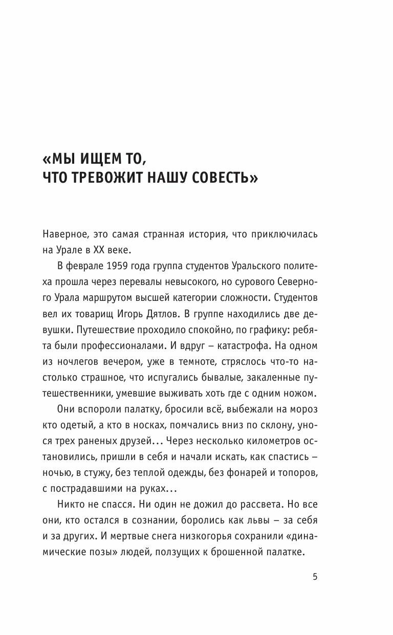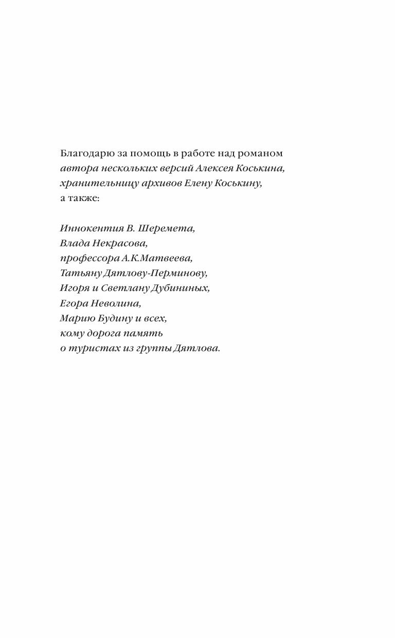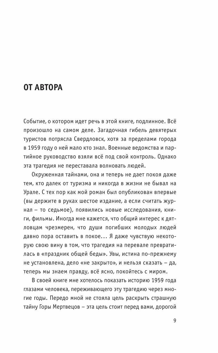 Для тех кто интересуется трагедией на перевале Дятлова, но не готов читать только документальные выкладки, эта книга для вас. Художественная канва-жизнь писательницы, и история туристов, идут как бы параллельно, и в то же время переплетаются в личностные отношения- писатель и его герои...
