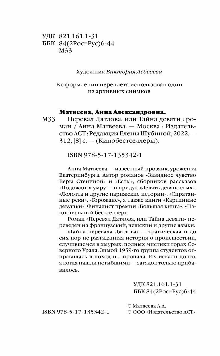 Перевал Дятлова или Тайна девяти (Матвеева Анна Александровна); АСТ, Редакция Елены Шубиной, 2024