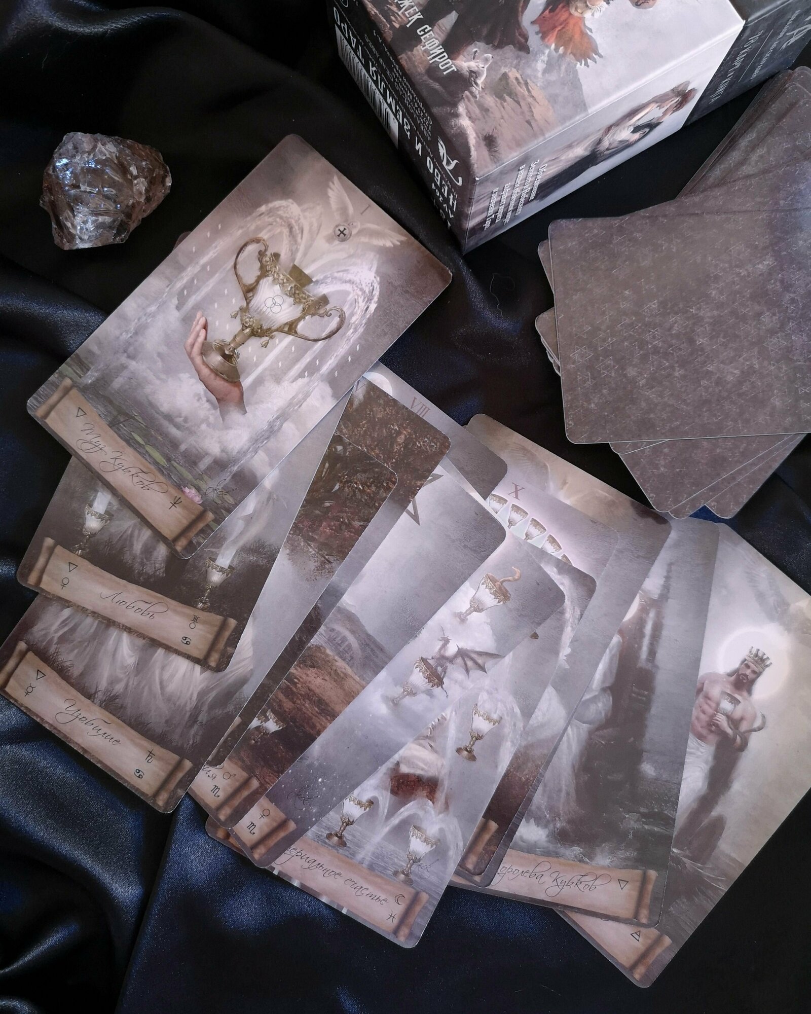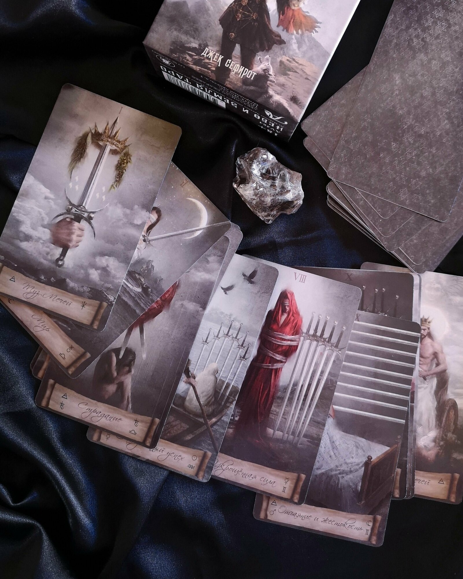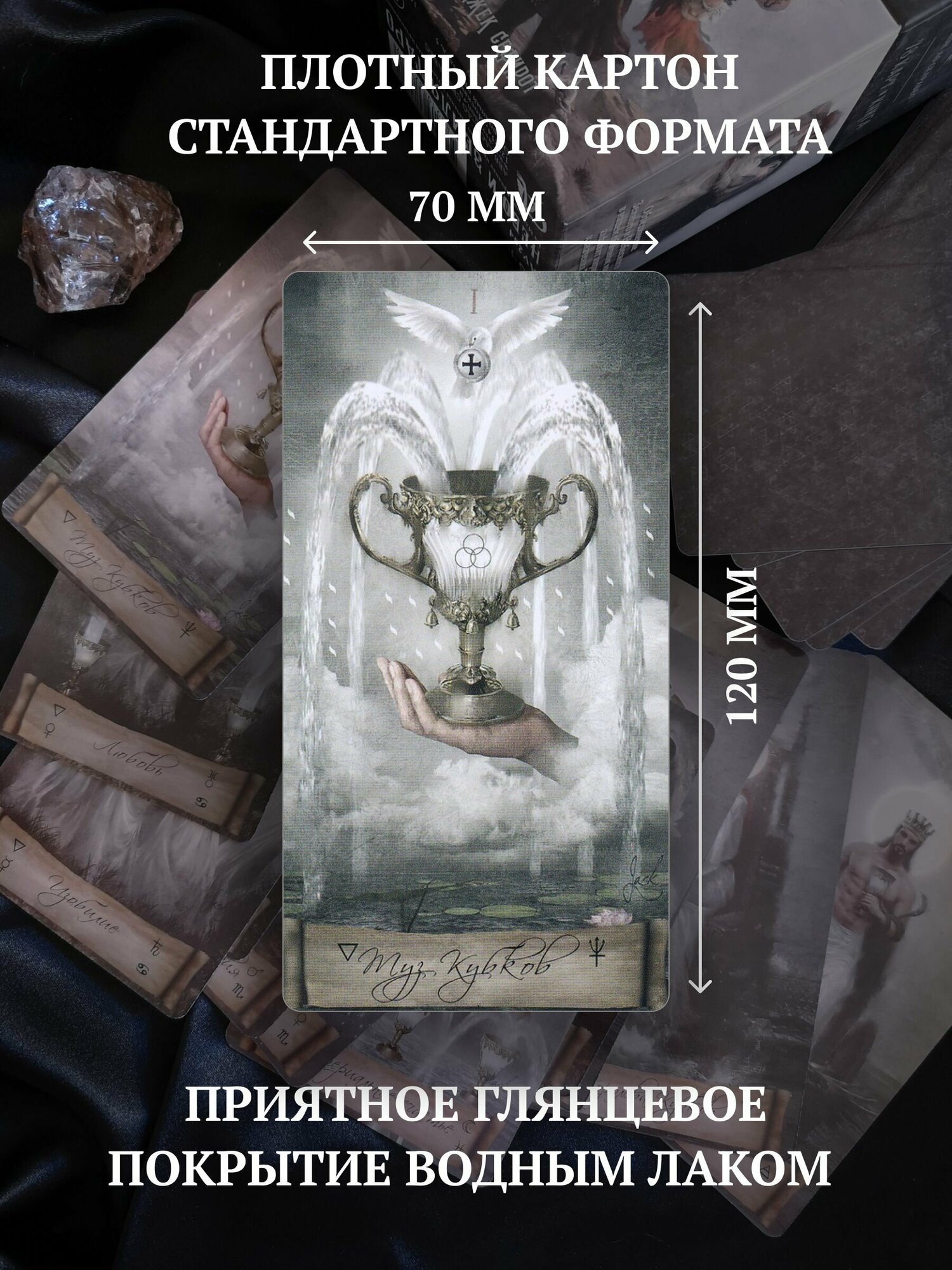 Это монохромное Таро оживляет призрачный мир фантазий. Изумительные, наполненные воздухом иллюстрации Арканов, уводят воображение за пределы материальности в бесконечность галактик, стирая границы между духовным и материальным.