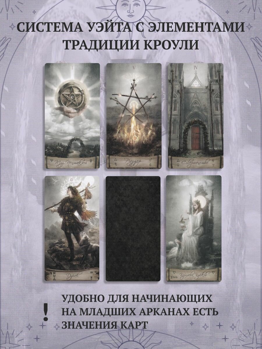 Лучшая колода за последнее время! Наполненная символизмом, но не перегруженная красками. На картах указаны соответствия буквам иврита, стихиям, положения на древе Сефирот, астрологические значения. В колоде используется символика значений Уэйта и Кроули. Красивая качественная прорисовка карт художником, это не компьютерная графика. Качественно исполненные карты, плотность, ламинация все выполнено отлично. Присутствует небольшая МБК с кратким описанием карт. У меня колода вызывает восторг!