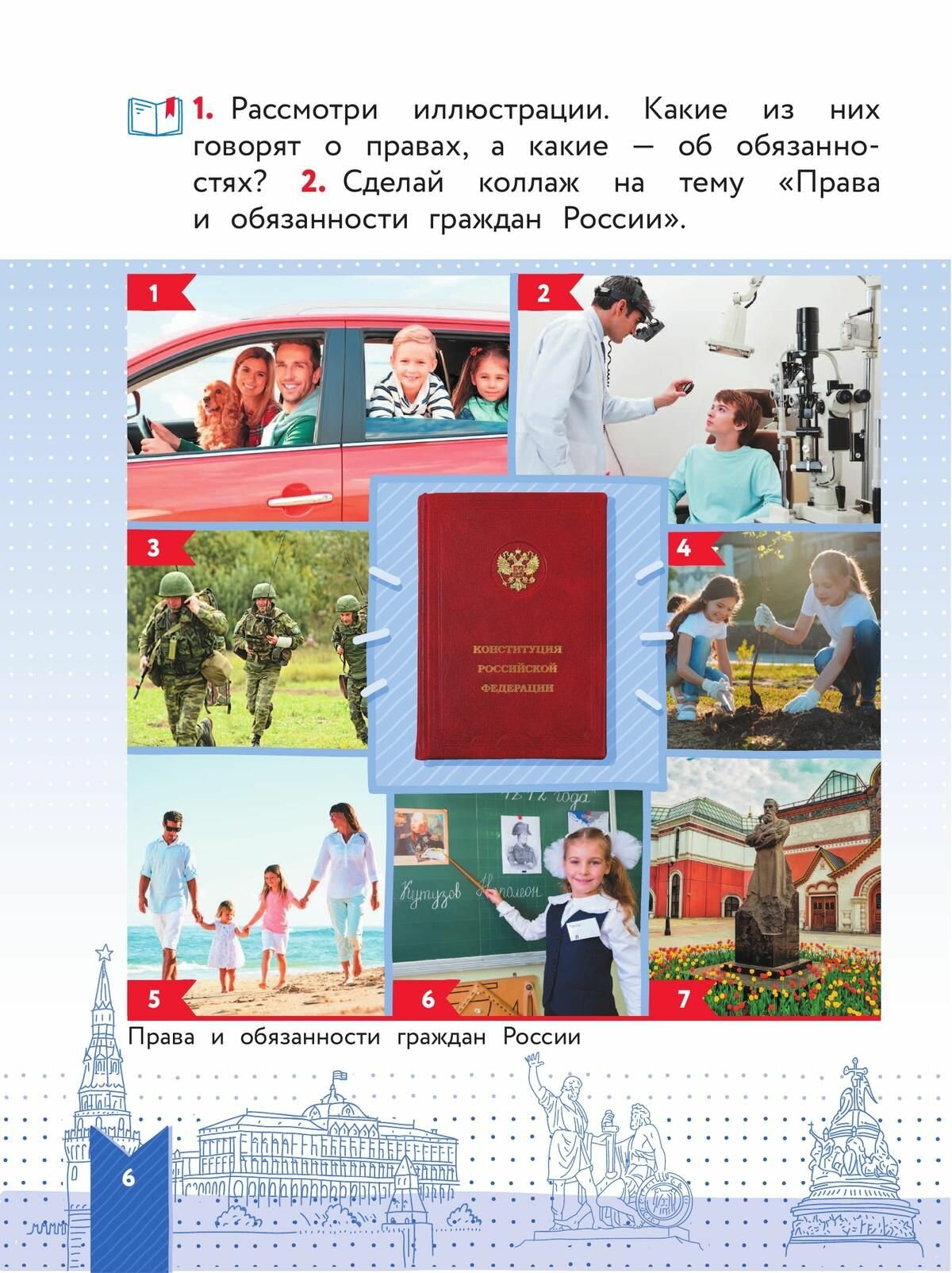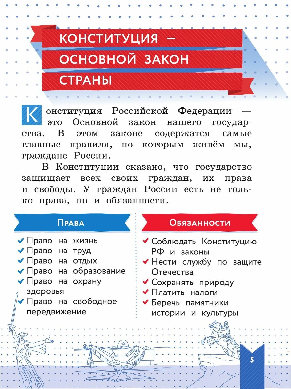 Богатый иллюстративный материал, увлекательные вопросы и задания способствуют формированию интереса к изучаемому материалу, осознанию учащимися начальных классов почётной роли граждан нашей страны.