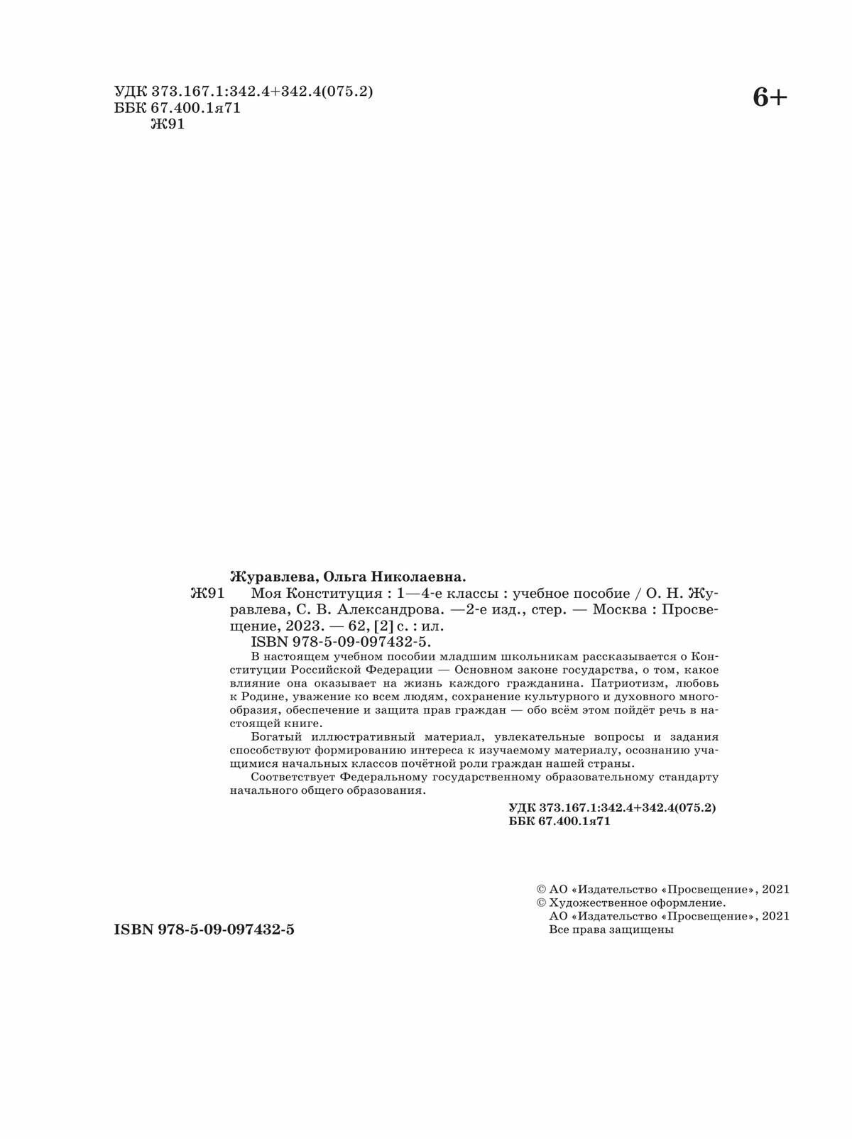 Моя конституция. 1-4 классы. Учебное пособие (Журавлева Ольга Николаевна, Александрова Светлана Владимировна); Просвещение, 2021