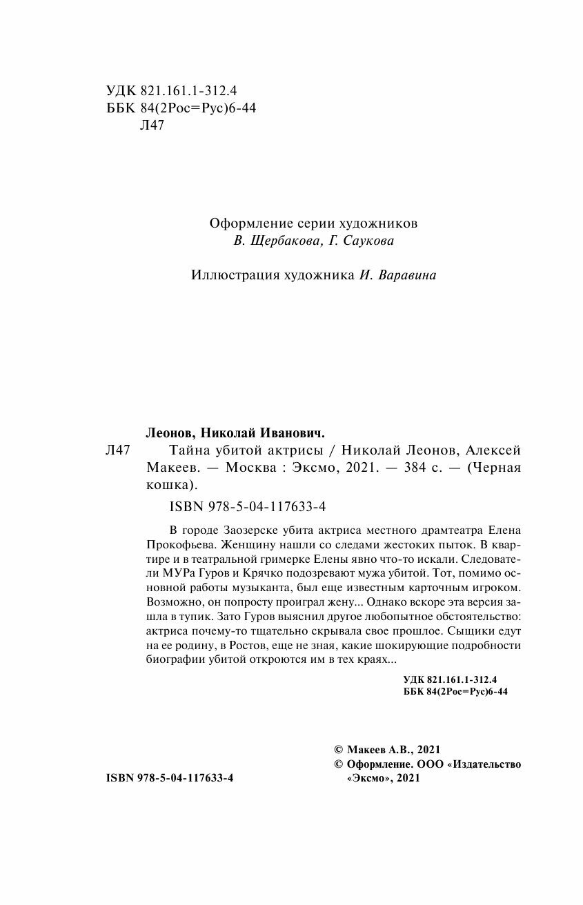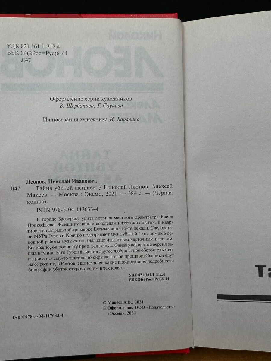 Книга: Тайна убитой актрисы (Алексей Викторович Макеев, Николай Иванович Леонов); Эксмо, 2021