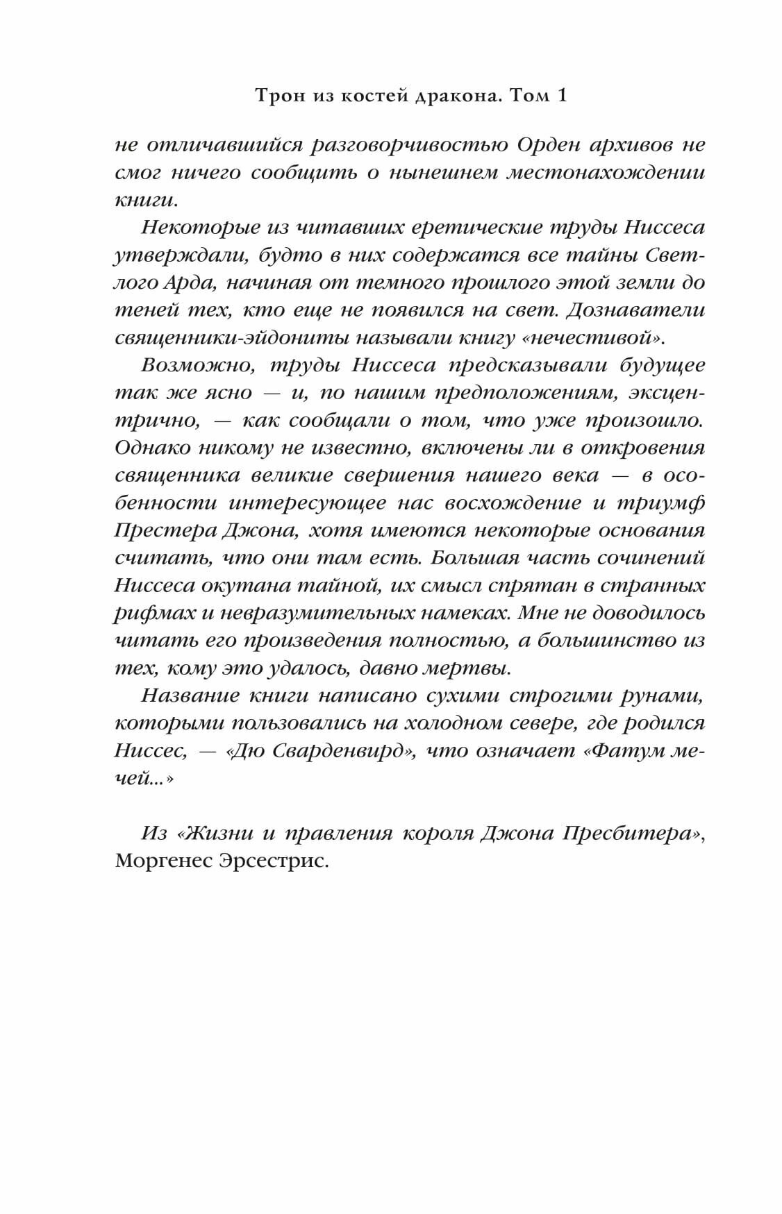 Трон из костей дракона первая книга ордена манускрипта Тэда Уильямса.Серию эту прочитала 20лет назад с огромным удовольствием.Насколько позволяет судить отрывок,перед нами новый перевод.Тем читателям,которые уже прочитали Корону из ведьминого дерева и Империю травы будет очень интересно узнать что же было раньше в Светлом Арде.