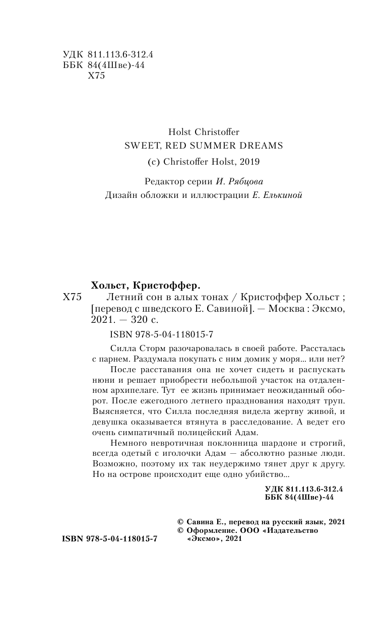 Книга: Летний сон в алых тонах (Кристоффер Хольст); Эксмо, Inspiria, Редакция 1, 2021