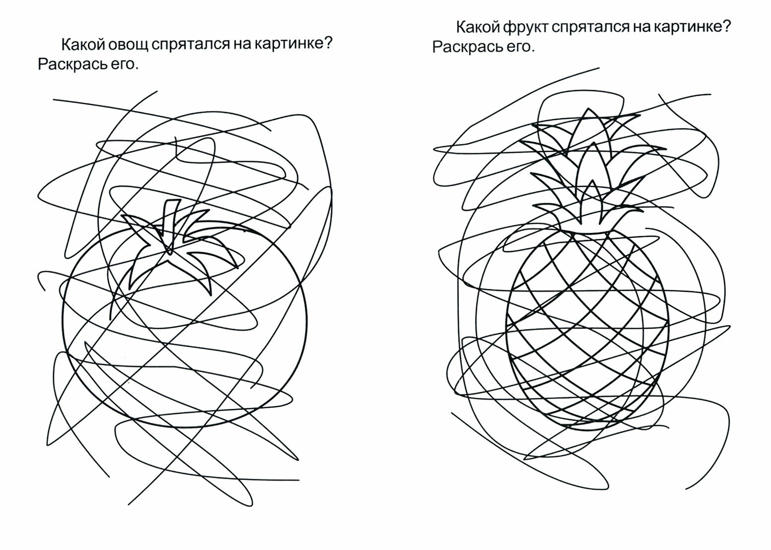 "Зашумленные изображения" представляют собой перечёркнутые, "спрятанные" разнообразными волнистыми, ломаными или прямыми линиями силуэты знакомых предметов, букв цифр и пр.