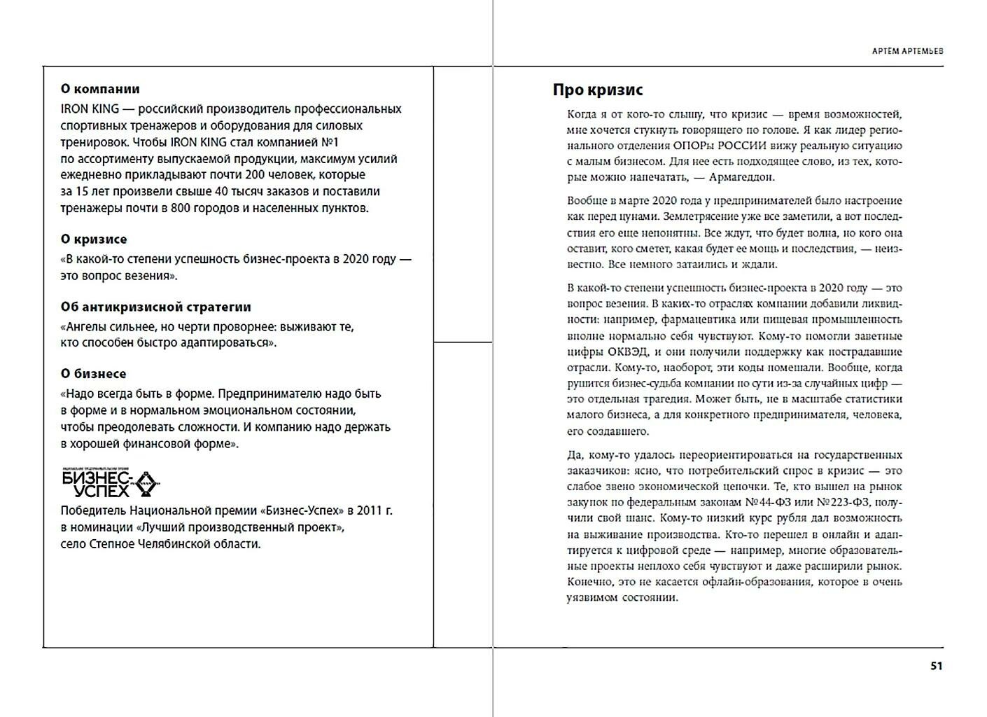 Мало книг написано про российский предпринимательский опыт, в основном продаются книги про зарубежный опыт, который не всегда применим к российским реалиям. Эта книга позволяет расширить представлением российском бизнесе и почерпнуть для себя много нового. В общем, мне понравилось, настоятельно рекомендую.