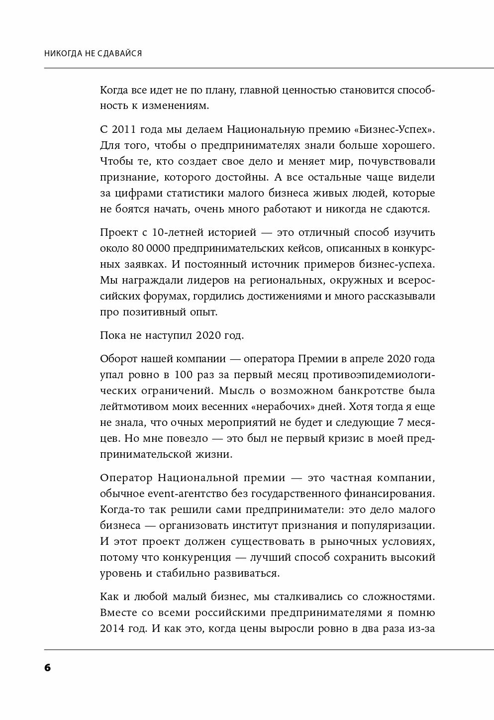 Руководитель Национальной премии «Бизнес-Успех» Дарья Сунцова изучила около 80 000 реальных историй малого и среднего бизнеса России. В ее книге 12 российских предпринимателей рассказывают о том, как преодолевали кризис: из первых рук вы узнаете о трудностях, с которыми им пришлось столкнуться, инструментах и стратегиях, которые позволили выстоять и стать сильнее.