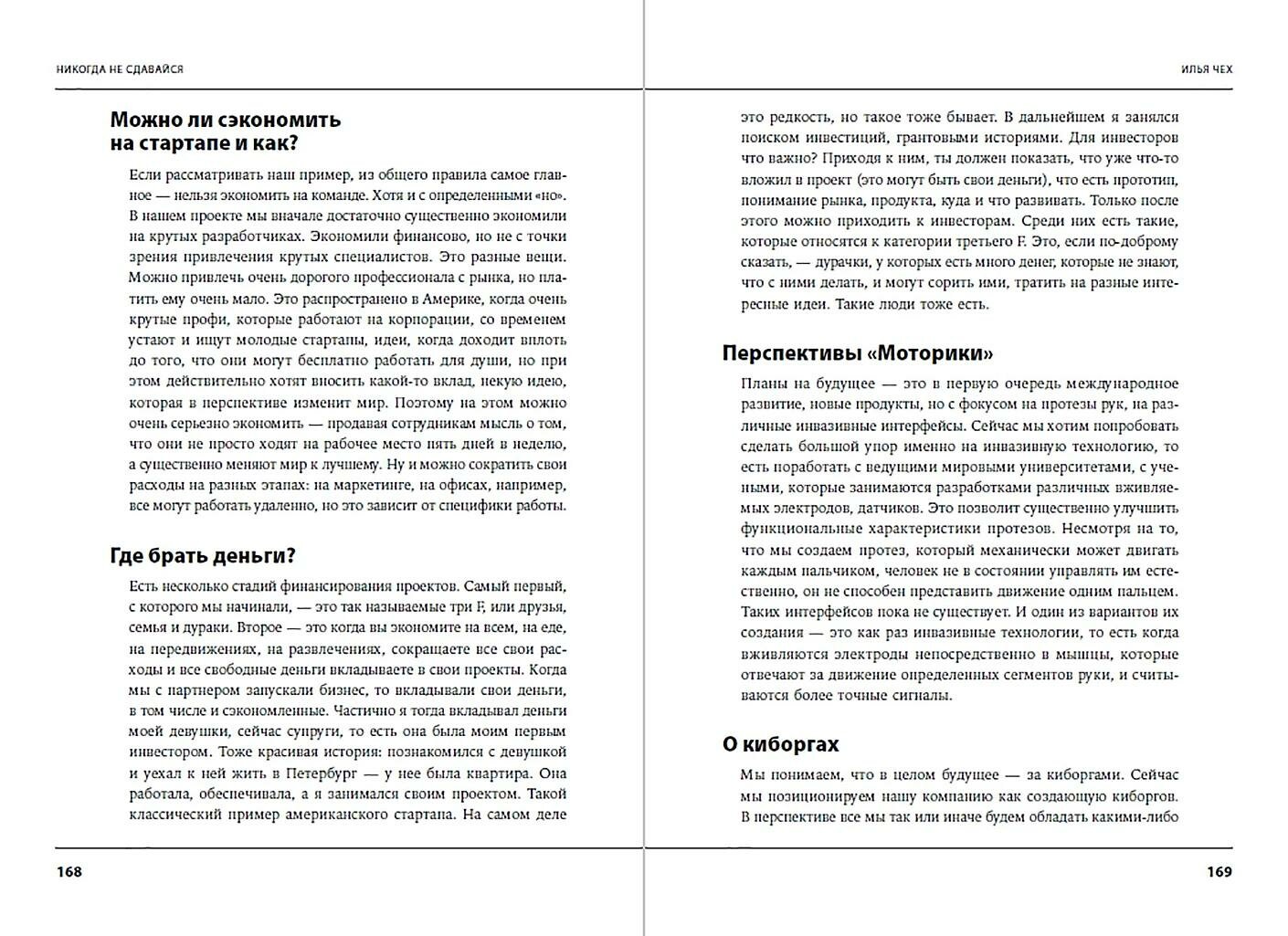 Потрясающие истории предпринимателей наших дней. Невероятно интересно узнать как коллеги по бизнесу справляются с текущими трудностями, не сдаются, идут вперед не смотря не на что и не только находят, но и "изобретают" новые возможности для своего бизнеса. Книга очень полезна, подчерпнул в ней новые идеи для своего бизнеса. Рекомендую.