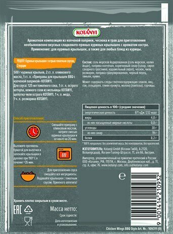 Сервис сравнения цен СкидкаГИД предлагает сравнить цены на товар «Приправа Kotanyi Для крылышек BBQ с копченой паприкой 20г»