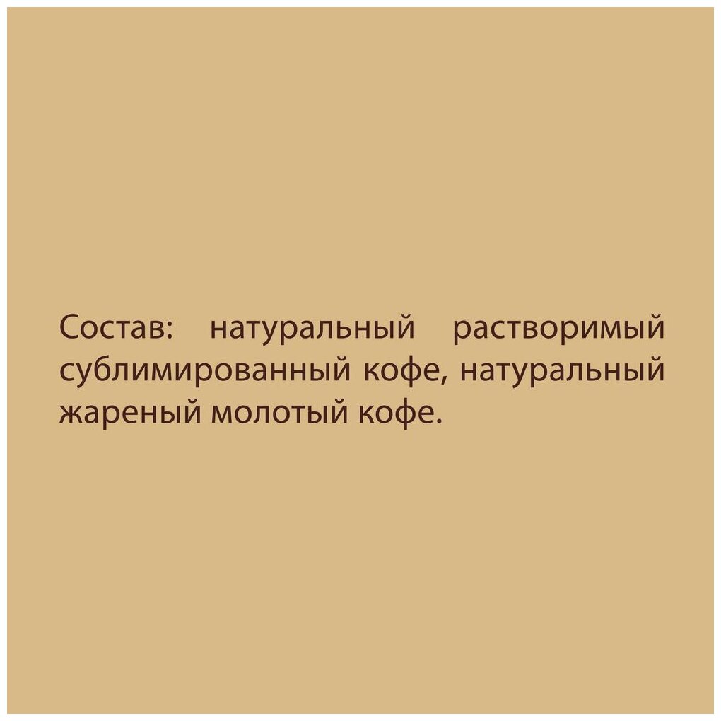 | Состав | натуральный растворимый сублимированный кофе, натуральный жаренный молотый кофе |