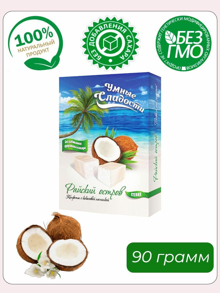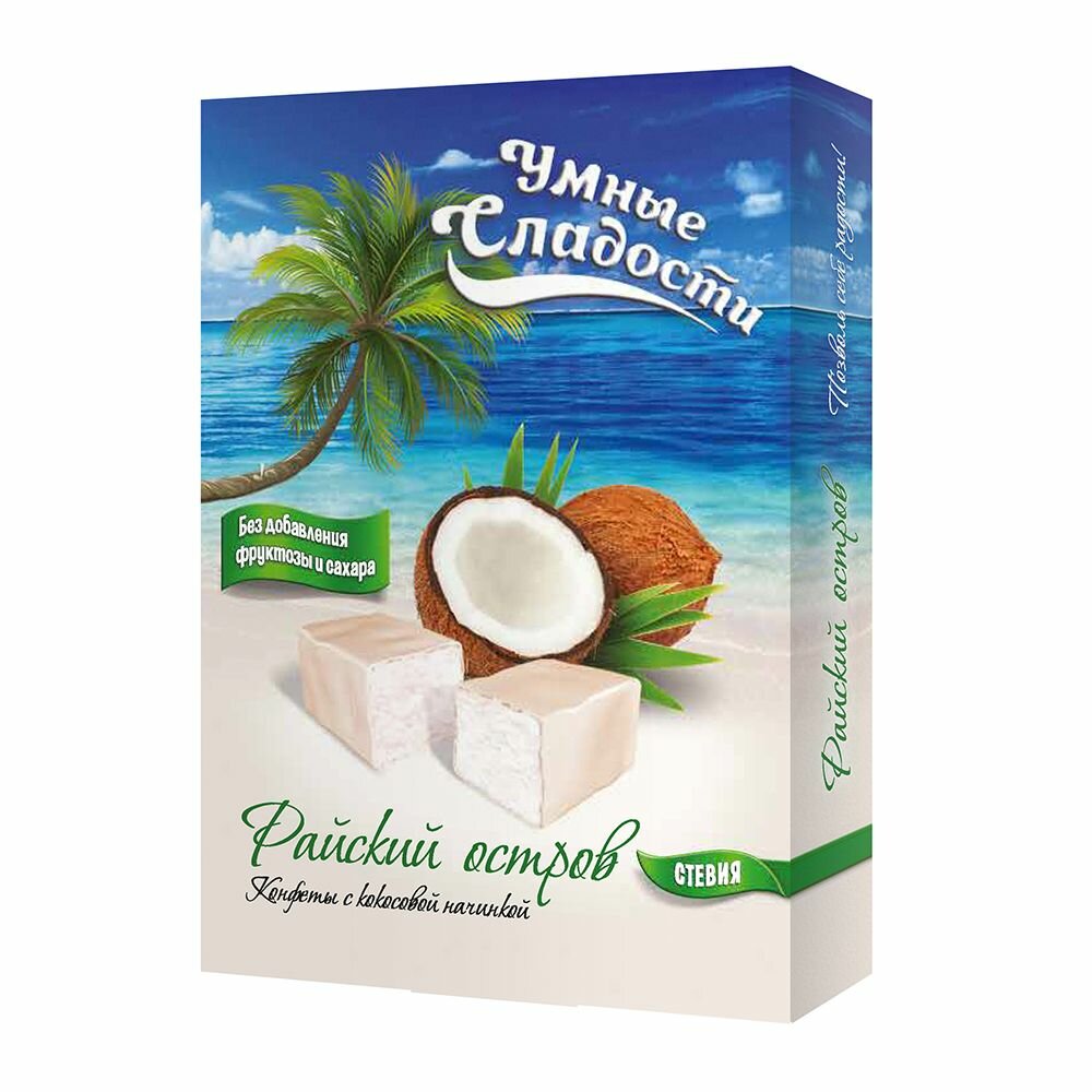 Конфеты Умные сладости Райский остров с кокосовой начинкой 90г