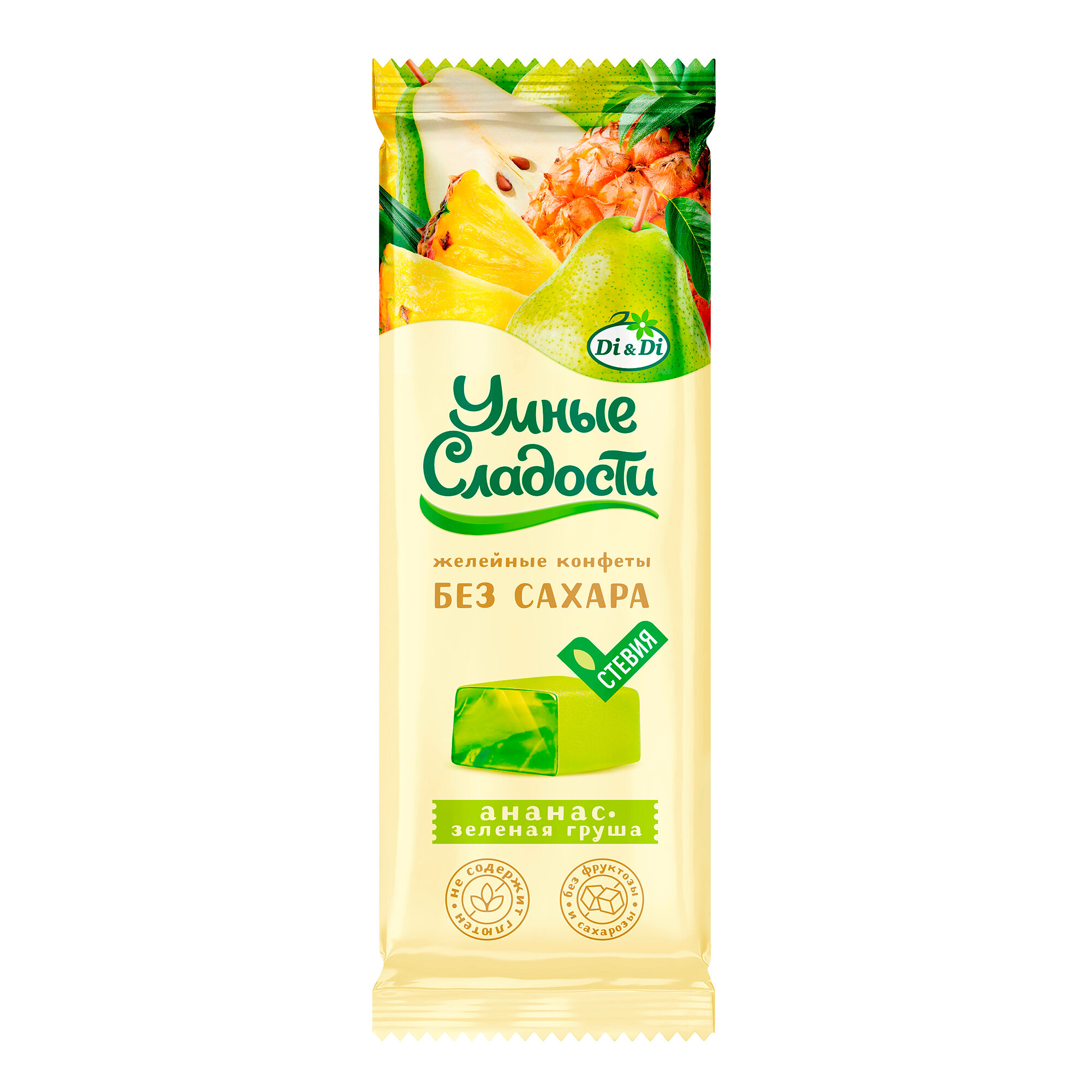 Конфеты Умные сладости Ананас-Зеленая груша желейные 90г