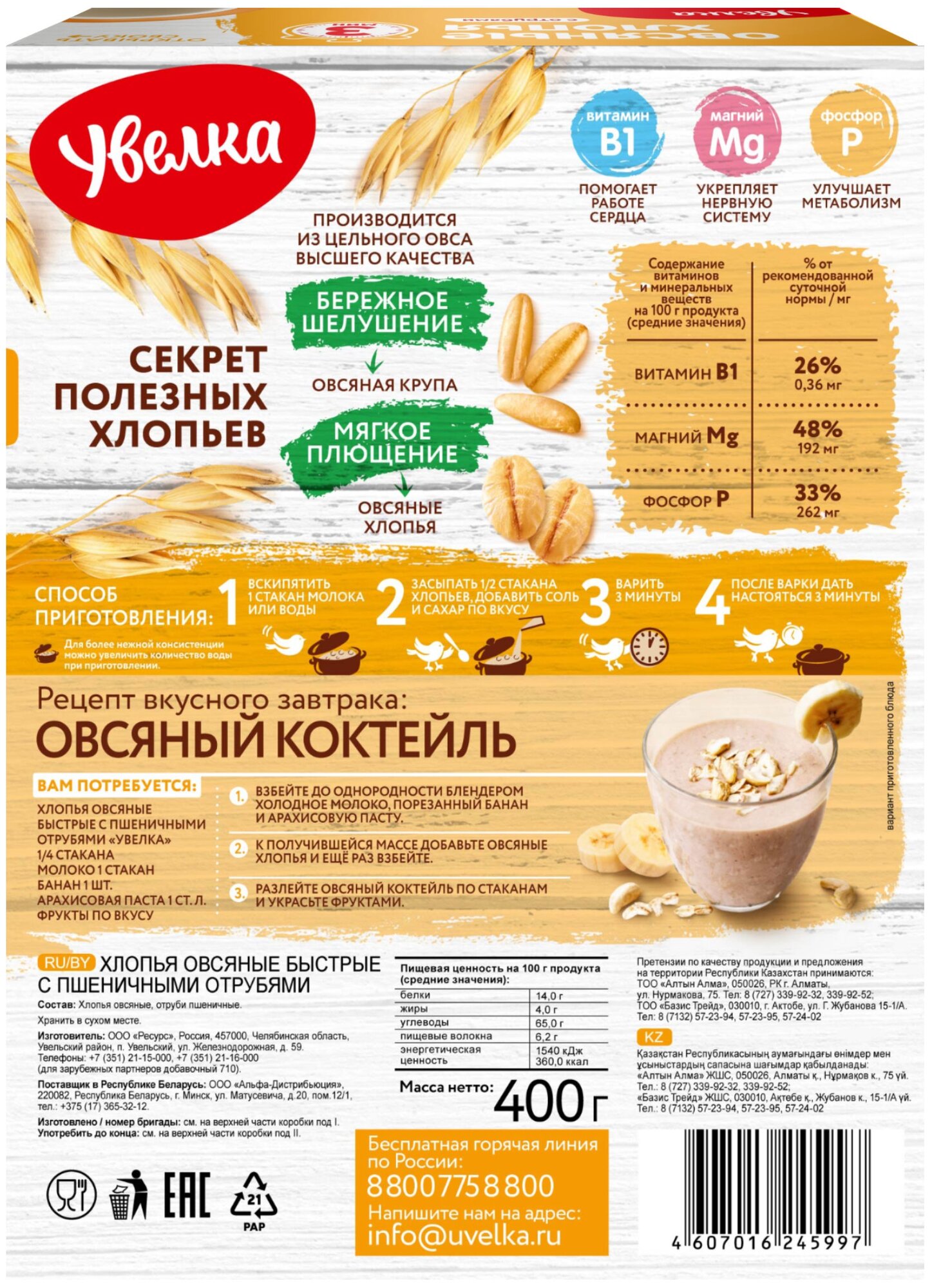 Хлопья овсяные Увелка с отрубями 400г РЕСУРС