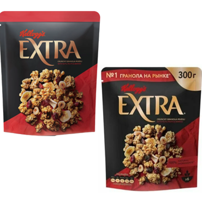 Мюсли Kelloggs Extra хрустящая гранола с орехами фруктами и ягодами 300г Утконос