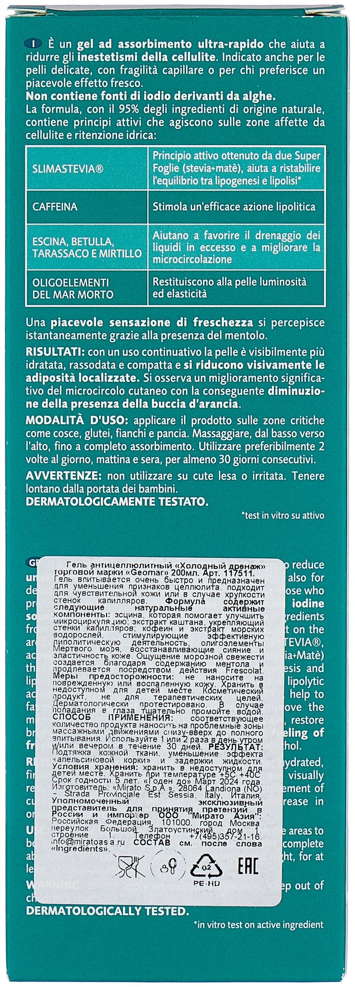 Крем-гель для тела Geomar антицеллюлитный холодный дренаж 200мл Mirato S.p.A.