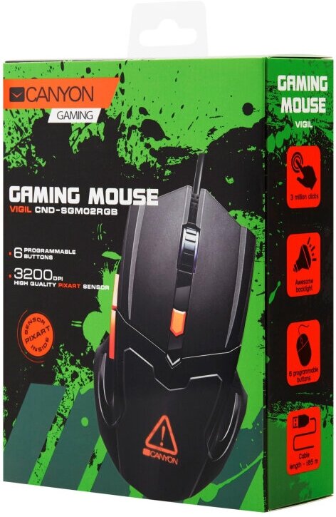 Игровая мышь Canyon Vigil обладает высококачественным оптическим датчиком Pixart 3168, который способен обеспечивать до 3200 DPI. Разрешение можно быстро изменить, контроль движения курсора точный и не требует усилий. Играйте с максимальной эффективностью, адаптируя мышь специально для вашего игрового персонажа. Приятное на ощупь прорезиненное покрытие обеспечивает долговечность, удобство и надежный захват и не дает появляться отпечаткам пальцев на поверхности.