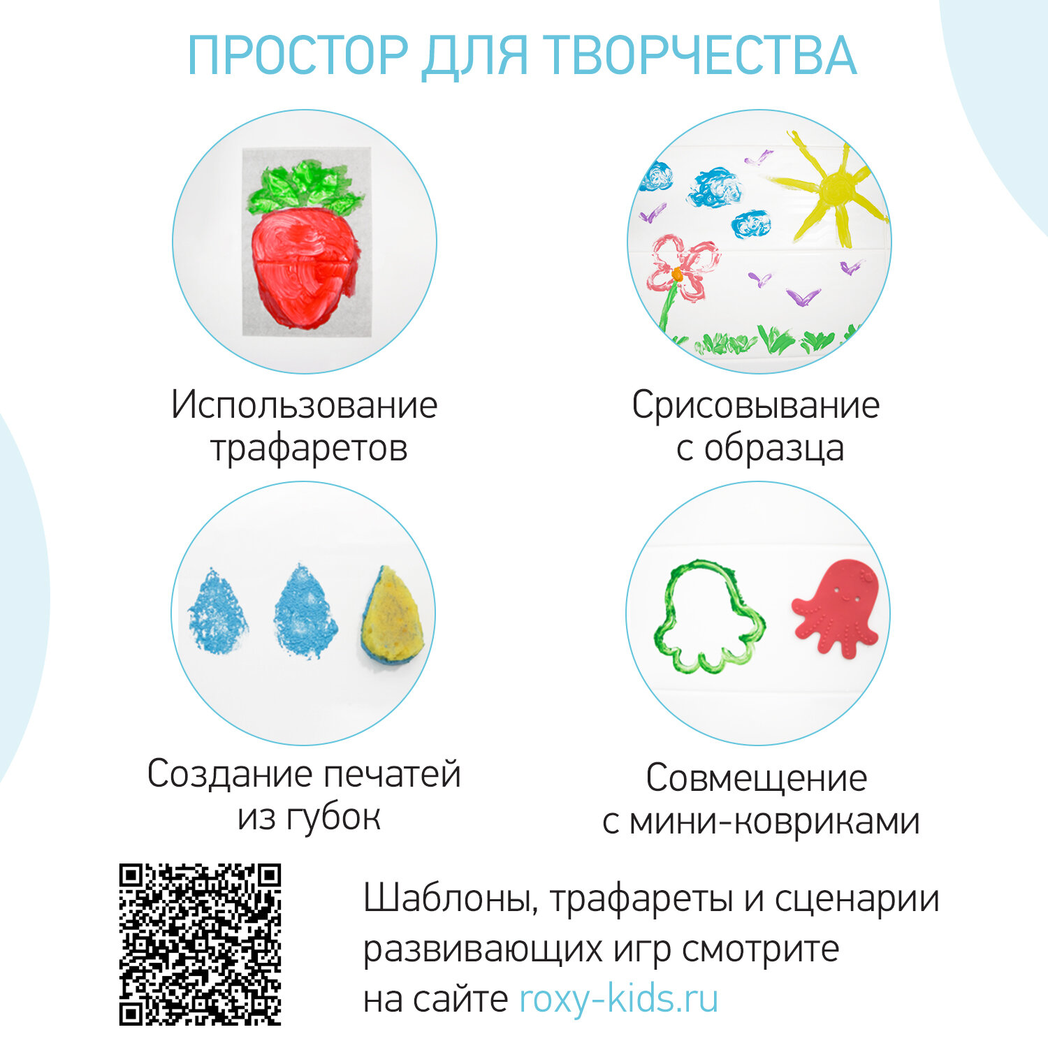 Рисование пальцами и кистью, на бумаге и в ванной комнате, создание рисунков из ладошек, использование раскрасок, шаблонов, трафаретов и печатей, дополнение рисунков мини-ковриками или игрушками – многообразие применений ограничивается только вашей фантазией!