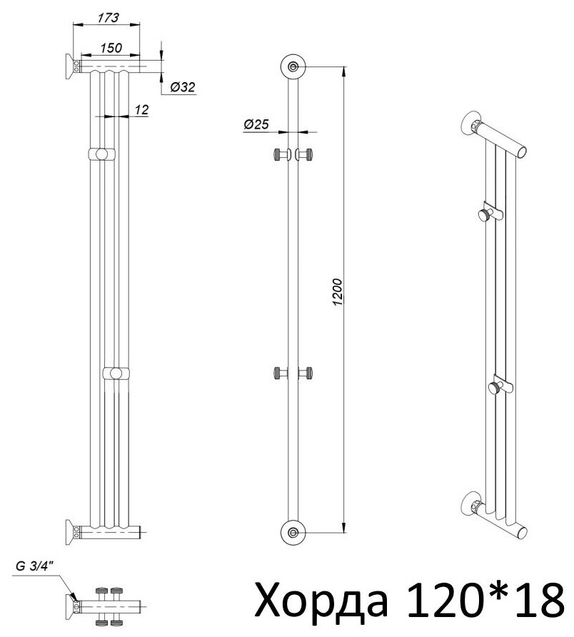 Полотенцесушитель Тругор Хорда 120*18 (Хорда120*18)