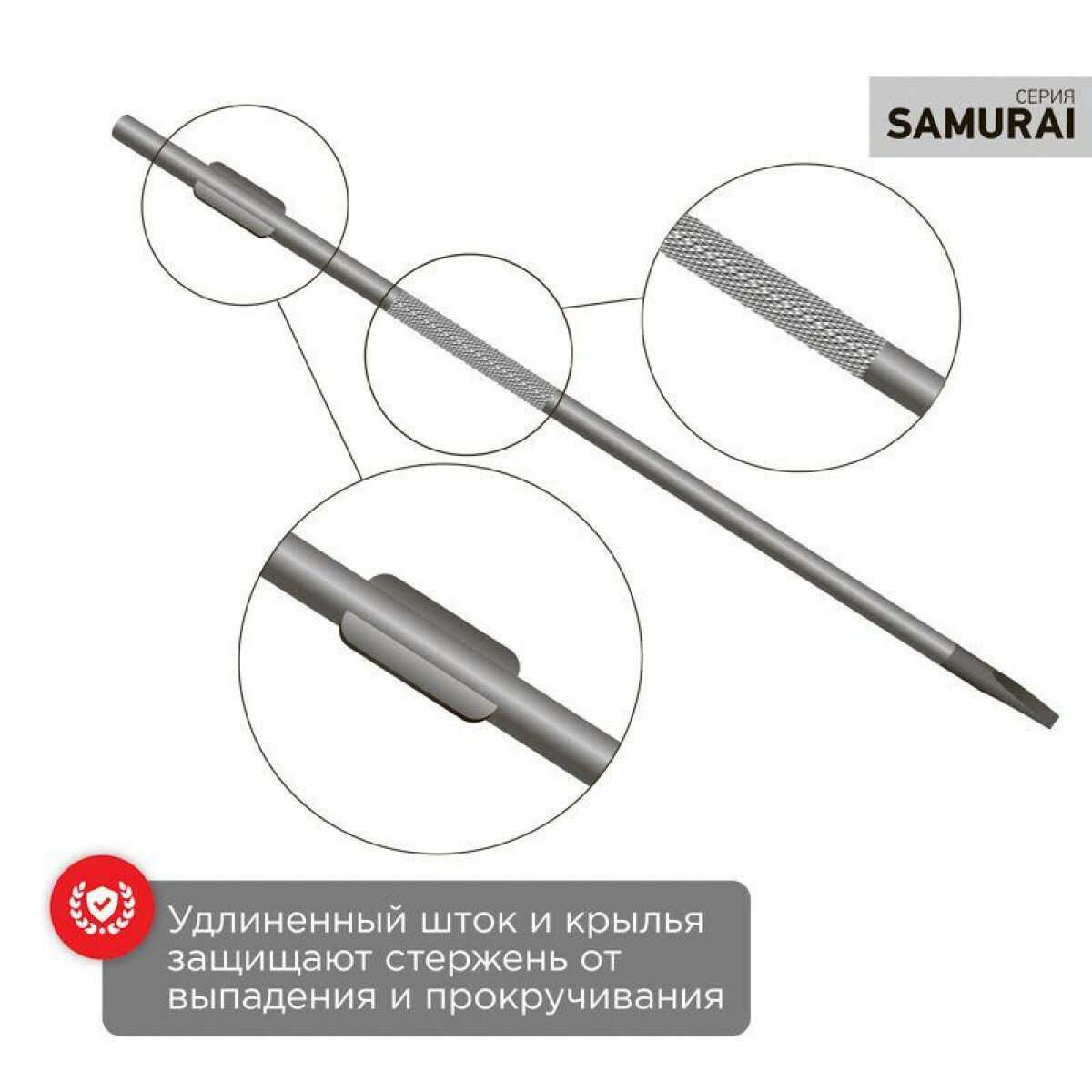 - На стержне расположены насечки, благодаря которым можно использовать отвертку как надфиль для точных работ