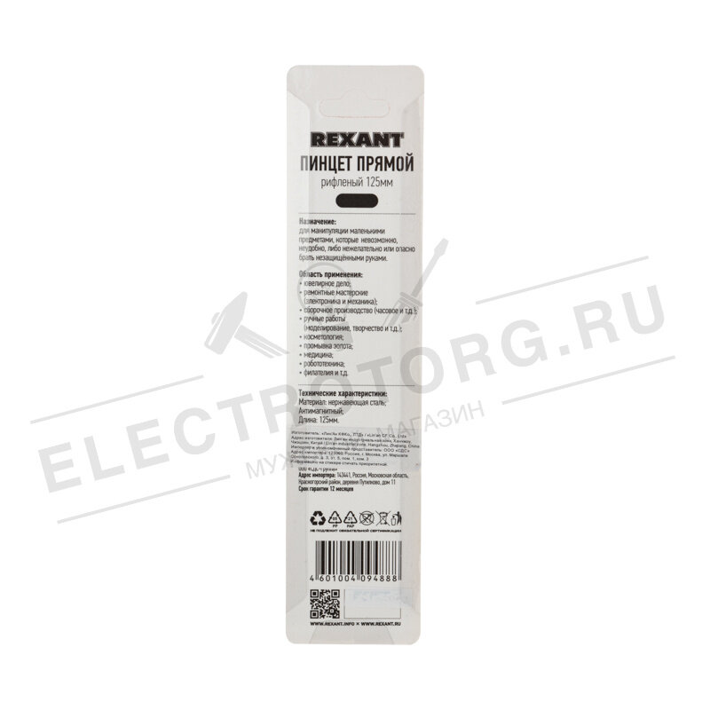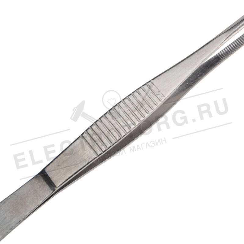 Пинцет прямой, рифленый 125 мм предназначен для различных работ и операций с мелкими предметами в труднодоступных местах. Пинцеты широко применяются при паяльных работах, в часовых и радиомастерских, филателии, медицине, биологии, химии, косметической и др. сферах, где невозможно, неудобно, либо опасно брать незащищенными руками предметы.