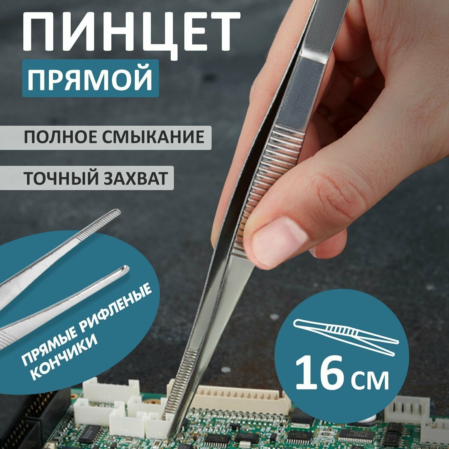 Пинцет прямой, рифленый 160 мм REXANT предназначен для различных работ и операций с мелкими предметами и в труднодоступных местах.