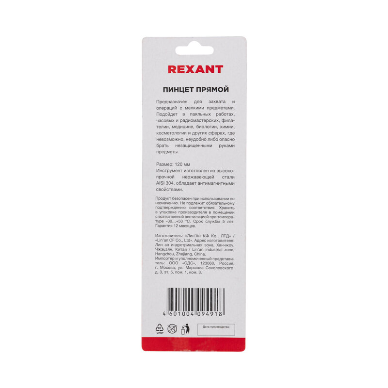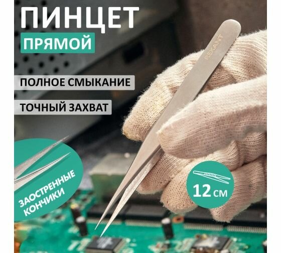 Пинцет прямой 120мм REXANT предназначен для манипуляции маленькими предметами, которые невозможно, неудобно, либо нежелательно или опасно брать незащищёнными руками.