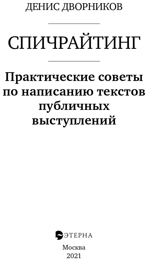 Спичрайтинг. Практические советы по написанию текстов публичных выступлений (Денис Дворников); Этерна, 2020