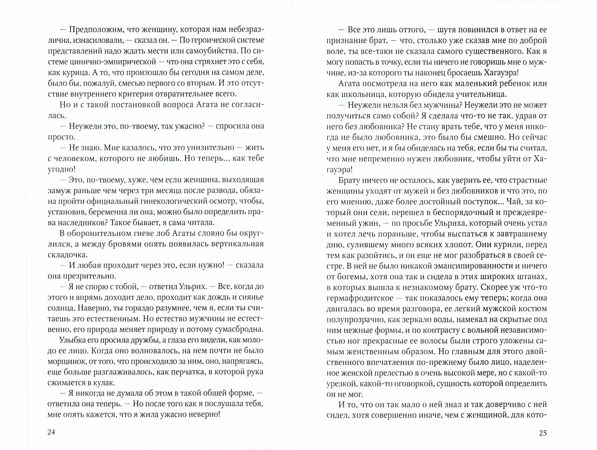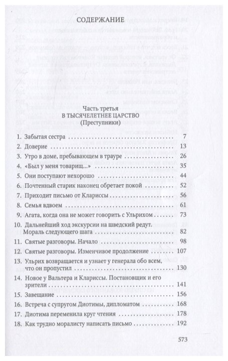 Несмотря на то, что роман незакончен, он производит грандиозное впечатление. Чего только нет в этой книги, но главный контекст зиждется на философско-психологическом основании. Музиль осмысляет внутренние миры своих персонажей, высветляя тени самых дальних уголков этих пространств. В книгу погружаешься с головой, невзирая на то, что чтение не назовешь простым.