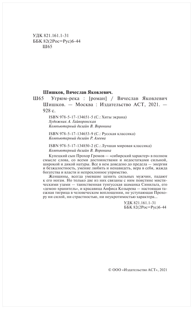 Книга: Угрюм-река (Шишков Вячеслав Яковлевич); ООО "Издательство Астрель", 2021