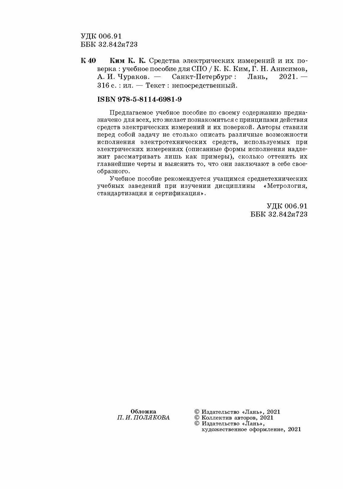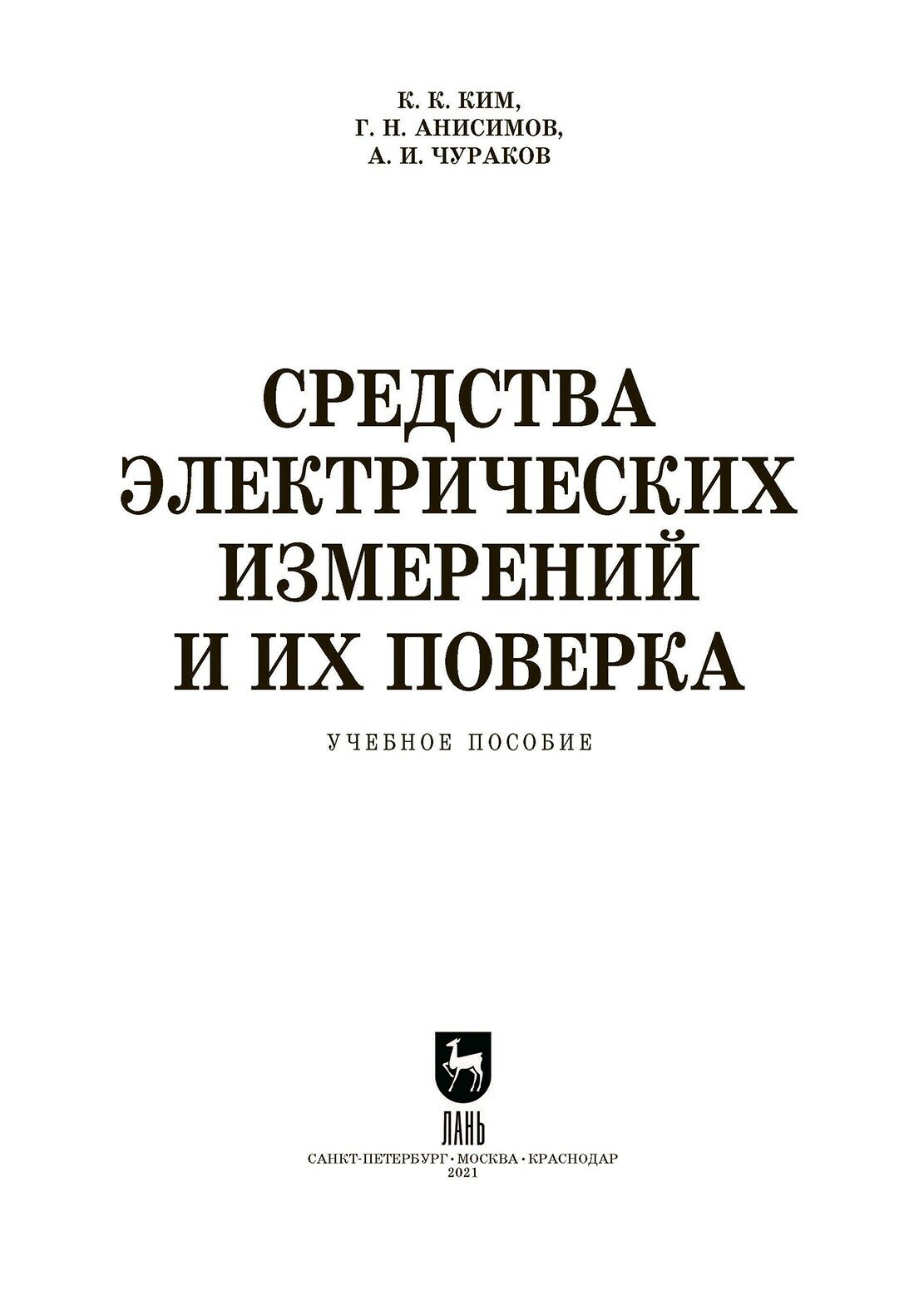 Средства электрических измерений и их поверка.СПО (Ким Константин Константинович, Анисимов Геннадий Николаевич, Чураков Александр Иванович); Лань, 2021